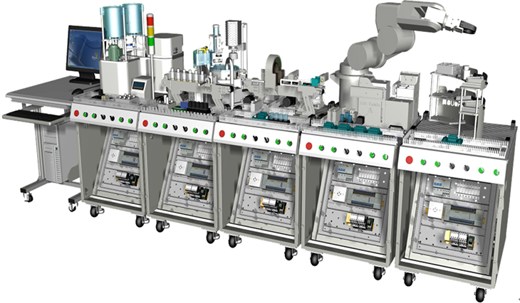機(jī)電一體化技術(shù)實訓(xùn)設(shè)備是指機(jī)械技術(shù)、電工電子技術(shù)、微電子技術(shù)、信息技術(shù)、傳感器技術(shù)、接口技術(shù)、信號變換技術(shù)等多種技術(shù)進(jìn)行有機(jī)地結(jié)合,并綜合應(yīng)用到實際中去的技能實訓(xùn)綜合技術(shù),現(xiàn)代化的自動生產(chǎn)設(shè)備幾乎可以說都是機(jī)電一體化的設(shè)備。自動化生產(chǎn)線實訓(xùn)考核系統(tǒng),可以培養(yǎng)和提高學(xué)生專業(yè)綜合能力,是一種重要的實訓(xùn)設(shè)備。自動化生產(chǎn)線實訓(xùn)系統(tǒng)、基于PLC技術(shù)的自動化生產(chǎn)線實訓(xùn)考核系統(tǒng),可以培養(yǎng)和提高學(xué)生專業(yè)綜合能力,是一種重要的實訓(xùn)設(shè)備。自動化生產(chǎn)線實訓(xùn)系統(tǒng)整體包括自動供料、檢測傳輸、檢測加工、自動裝配、自動分揀等工序,很好的將機(jī)械技術(shù)、微電子技術(shù)、電工電子技術(shù)、傳感測試技術(shù)、接口技術(shù)、信息變換技術(shù)、網(wǎng).絡(luò)通信技術(shù)等多種技術(shù)有機(jī)地結(jié)合。該系統(tǒng)中自動分揀站的設(shè)計過程,包括系統(tǒng)硬件設(shè)計、PLC控制設(shè)計和程序設(shè)計方法,F(xiàn)代化的自動生產(chǎn)設(shè)備的最大特點是它的綜合性和系統(tǒng)性,在這里,機(jī)械技術(shù)、微電子技術(shù)、電工電子技術(shù)、傳感測試技術(shù)、接口技術(shù)、信息變換技術(shù)、網(wǎng)絡(luò)通信技術(shù)等多種技術(shù)有機(jī)地結(jié)合,并綜合應(yīng)用到生產(chǎn)設(shè)備中:而系統(tǒng)性指的是,生產(chǎn)線的傳感檢測、傳輸與處理、控制、執(zhí)行與驅(qū)動等機(jī)構(gòu)在微處理單元的控制下協(xié)調(diào)有序地工作,有機(jī)地融合在一起?删幊绦蚩刂破(PLC)以其高抗干擾能力、高可靠性、高性能價格比且編程簡單而廣泛地應(yīng)用在現(xiàn)代化的自動生產(chǎn)設(shè)備中,擔(dān)負(fù)著生產(chǎn)線的大腦一微 處理單元的角色。因此,培養(yǎng)掌握機(jī)電一體化技術(shù),掌握PLC技術(shù)及PLC網(wǎng)絡(luò)技術(shù)的技術(shù)人材是當(dāng)務(wù)之急。而一套基于PLC技術(shù)的自動化生產(chǎn)線實訓(xùn)考核設(shè)備可以模擬一個與實際生產(chǎn)情況+分接近的控制過程,使學(xué)習(xí)者得到一個非常接近于實際的教學(xué)設(shè)備環(huán)境,從而縮短了理論教學(xué)與實際應(yīng)用之間的距離。自動分揀站需完成對上一單元送來的已加工、裝配的工件進(jìn)行分揀。使不同顏色的工件從不同的料槽分流的功能。當(dāng)輸送站送來工件放到傳送帶上并為入料口光電傳感器檢測到時,即啟動變頻器,工件開始送入分揀區(qū)進(jìn)行分揀。上海碩博弘揚大國工匠精神, 發(fā)展職業(yè)教育,應(yīng)用教學(xué)設(shè)備,為企業(yè)培養(yǎng)高技能人才,而專業(yè)生產(chǎn):光機(jī)電一體化(自動生產(chǎn)線)實訓(xùn)裝置、灌裝自動化生產(chǎn)線實訓(xùn)裝置、工業(yè)自動生產(chǎn)線實訓(xùn)裝置 、工業(yè)控制模擬實訓(xùn)裝置 、機(jī)電一體化組合實訓(xùn)平臺 、機(jī)電一體化綜合實訓(xùn)考核裝置、自動化生產(chǎn)安裝與調(diào)試實訓(xùn)裝置 、光機(jī)電一體化高速分揀實訓(xùn)系統(tǒng) 、典型機(jī)電設(shè)備安裝與控制實訓(xùn)裝置、模塊式柔性自動環(huán)形生產(chǎn)線實驗系統(tǒng)(帶機(jī)器人工程型)、立體停車庫實物教學(xué)實驗裝置、機(jī)電一體化柔性生產(chǎn)線加工實訓(xùn)系統(tǒng)(5站)、網(wǎng)絡(luò)型模塊式柔性自動化生產(chǎn)線實驗系統(tǒng)、模塊式柔性自動環(huán)形生產(chǎn)線實驗系統(tǒng)(工程型)、柔性生產(chǎn)制造實驗系統(tǒng)(工程型)、現(xiàn)代物流倉儲自動化實驗系統(tǒng)、運動實訓(xùn)裝置、循環(huán)搬運自動控制實訓(xùn)裝置、平面雙軸運行控制實訓(xùn)裝置、工業(yè)機(jī)械手實訓(xùn)裝置、物料分揀實訓(xùn)裝置、機(jī)械手實訓(xùn)裝置 、立體倉庫實訓(xùn)裝置、十字路口交通燈實訓(xùn)系統(tǒng)、機(jī)電液氣一體化綜合實訓(xùn)裝置、光機(jī)電一體化高速分揀實訓(xùn)系統(tǒng)、步進(jìn)伺服控制綜合實訓(xùn)平臺、光機(jī)電氣一體化控制實訓(xùn)系統(tǒng)、 光機(jī)電一體化綜合實訓(xùn)考核裝置、光機(jī)電一體化實訓(xùn)考核裝置、光機(jī)電一體化實訓(xùn)考核裝置、光機(jī)電氣一體化控制實訓(xùn)系統(tǒng)、自動生產(chǎn)線拆裝與調(diào)試實訓(xùn)裝置、柔性自動化生產(chǎn)線實訓(xùn)系統(tǒng)。