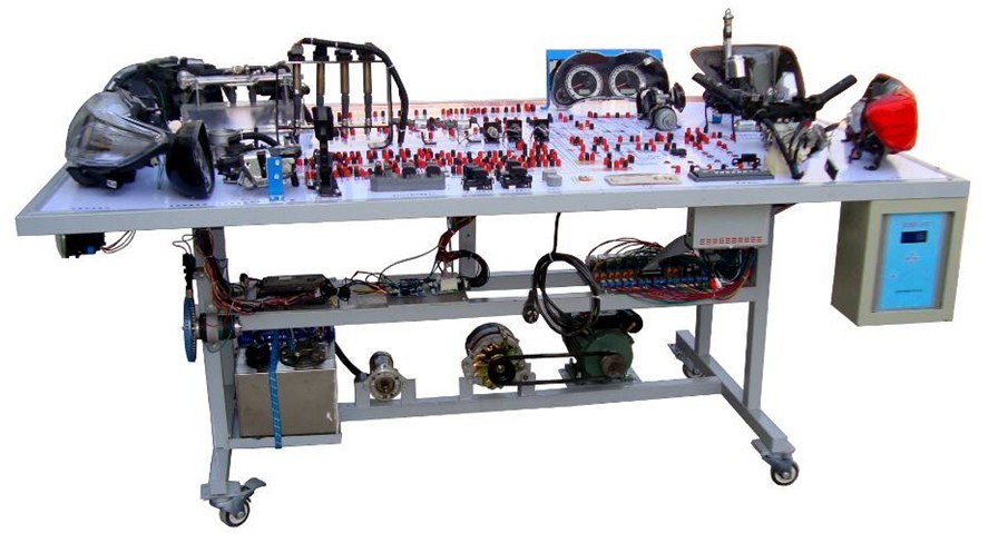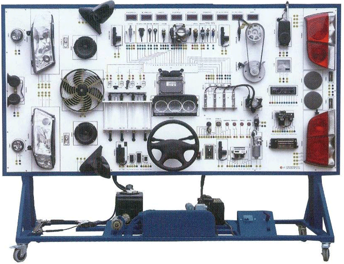 汽車電氣設(shè)備實(shí)訓(xùn)室。汽車電器設(shè)備實(shí)訓(xùn)室包含有汽車燈光系統(tǒng)、車載網(wǎng)絡(luò)系統(tǒng)、全車電器系統(tǒng)、汽車啟動(dòng)系統(tǒng)、汽車空調(diào)系統(tǒng)、全車線路試驗(yàn)臺、等實(shí)訓(xùn)教學(xué)設(shè)備。該實(shí)訓(xùn)室可以承擔(dān)《汽車構(gòu)造》、《汽車電器設(shè)備》、《汽車電控系統(tǒng)》、《汽車檢測與診斷》等課程的實(shí)踐教學(xué)任務(wù)?梢杂糜谘芯、分析全車電器系統(tǒng)、燈光系統(tǒng)、儀表系統(tǒng)等電器設(shè)備的電路及功能。利用這些系統(tǒng)進(jìn)行實(shí)踐教學(xué),使學(xué)生熟悉汽車電器的結(jié)構(gòu)和工作原理,掌握各個(gè)系統(tǒng)的基本組成電路,掌握主要電路的檢測方法和系統(tǒng)的故障特征,從而具有一定的檢測和調(diào)校能力。