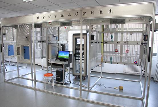 樓宇智能化工程實訓系統(tǒng)在結構上以智能建筑模型為基礎,包含了智能大樓、智能小區(qū)、管理中心和樓道等典型結構,涵蓋了對講門禁、安防、視頻監(jiān)控、消防、綜合布線和DDC監(jiān)控照明六個系統(tǒng),各系統(tǒng)既可獨立運行,也可實現聯動。通過此系統(tǒng)進行項目訓練,檢驗學生的團隊協(xié)作能力、計劃組織能力、樓宇設備安裝與調試能力、工程實施能力、職業(yè)素養(yǎng)和交流溝通能力等。