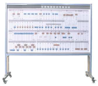 3.設(shè)備由原車解剖的車身平臺(tái)和教學(xué)板組成,原車車身車殼安裝原車零部件,底部安裝4個(gè)腳輪,移動(dòng)靈活,腳輪帶自鎖裝置。