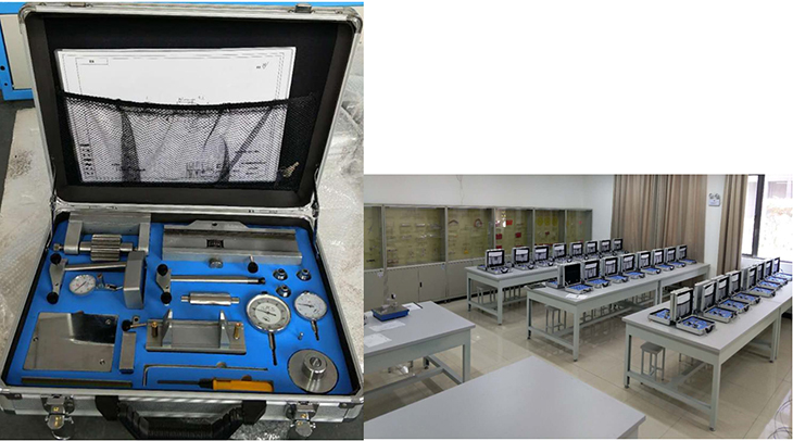 零件形位誤差測量組合實訓裝置是根據(jù)《公差配合與技術測量》課程的基本教學要求,精心設計的一套零件形位誤差檢測組合訓練產(chǎn)品。它由檢測零件、組合跳動儀、組合測微儀、配套圖紙及實訓指導書組成。其目的是通過零件形位誤差的檢測,加深學生對形位誤差及形位公差基本概念的了解,掌握形位誤差測量的方法的技能,為公差配合在后續(xù)課程中的應用奠定扎實的基礎。