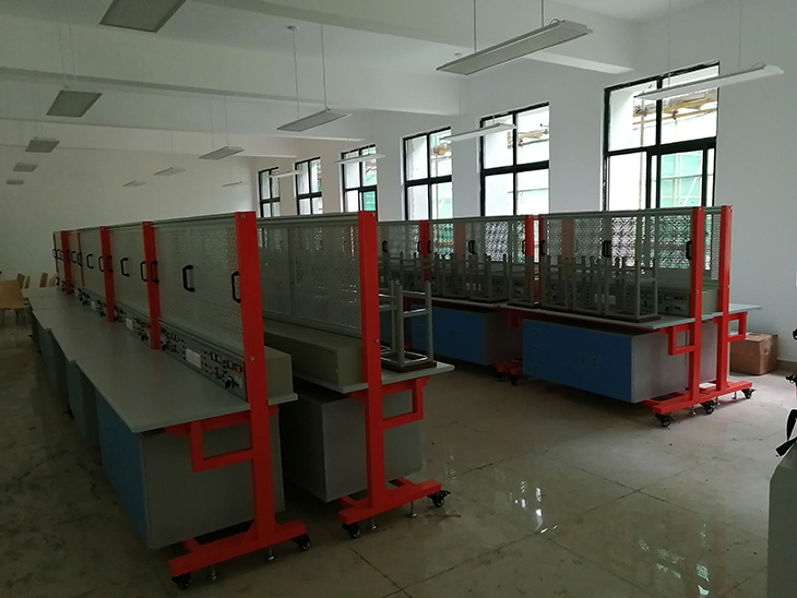 電氣控制實訓室設備為師生提供了進行電氣控制技術方面的設計性試驗的工作條件,主要培養(yǎng)學生掌握常用低壓電器的結構、使用、維修和故障排除等能力。可做為電工設計技能競賽和維修電工的培訓場所。專業(yè)教師可以利用該實驗室的相關設備,進行電氣控制技術等方面的課題研究及產品開發(fā)。主要完成《電機與控制》、《電氣控制與PLC》等相關課程的實驗、實訓教學任務。