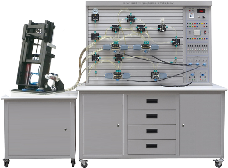 液壓與氣動(dòng)技術(shù)實(shí)驗(yàn)室設(shè)備、透明液壓實(shí)驗(yàn)臺(tái)、氣動(dòng)實(shí)驗(yàn)臺(tái)、液壓元件拆裝實(shí)訓(xùn)臺(tái)、透明液壓傳動(dòng)演示實(shí)驗(yàn)臺(tái)、液壓綜合測(cè)試實(shí)驗(yàn)臺(tái)、智能液壓綜合實(shí)驗(yàn)臺(tái)、機(jī)電液綜合實(shí)驗(yàn)臺(tái)、雙面氣動(dòng)傳動(dòng)實(shí)驗(yàn)臺(tái)、液壓氣動(dòng)元件陳列柜、液壓挖掘機(jī)實(shí)驗(yàn)臺(tái)、液壓起重機(jī)實(shí)驗(yàn)臺(tái)、液壓裝載機(jī)實(shí)驗(yàn)臺(tái)、透明液壓推土機(jī)實(shí)訓(xùn)臺(tái)、液壓叉車(chē)控制教學(xué)實(shí)驗(yàn)臺(tái)主要承擔(dān)機(jī)電類(lèi)相關(guān)專(zhuān)業(yè)《液壓與氣動(dòng)技術(shù)》課程的專(zhuān)業(yè)實(shí)驗(yàn)任務(wù)。能提供包括液壓泵和控制元件結(jié)構(gòu)拆裝與分析實(shí)驗(yàn)、系統(tǒng)回路控制實(shí)驗(yàn)、系統(tǒng)性能實(shí)驗(yàn)和氣動(dòng)技術(shù)實(shí)驗(yàn)在內(nèi)的不同類(lèi)型的實(shí)驗(yàn)。液壓與氣動(dòng)實(shí)驗(yàn)室所開(kāi)設(shè)的實(shí)驗(yàn)和液壓(或氣動(dòng))行業(yè)中的液壓系統(tǒng)(或氣動(dòng)系統(tǒng))的設(shè)計(jì)、連接調(diào)試、維護(hù)等緊密相關(guān),通過(guò)機(jī)-電-液一體化綜合控制實(shí)驗(yàn),學(xué)生可系統(tǒng)地學(xué)習(xí)PLC程序設(shè)計(jì)與調(diào)試、液壓回路的設(shè)計(jì)與調(diào)試,并且通過(guò)碩博軟件使相關(guān)知識(shí)有機(jī)地結(jié)合在一起,實(shí)現(xiàn)對(duì)硬件的動(dòng)作,從而提高各門(mén)課程的綜合應(yīng)用能力。