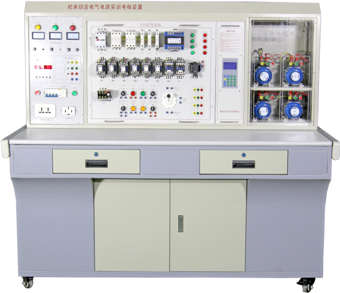 機床電氣控制實訓(xùn)室設(shè)備是機電設(shè)備維修與管理、電氣自動化技術(shù)等專業(yè)學(xué)生的實訓(xùn)場所,通過實驗、實訓(xùn),使學(xué)生掌握工廠常用的各類型設(shè)備的電路維護檢修。如鉆床控制電路、車床控制電路、銑床控制電路、磨床控制電路及鏜床控制電路等。主要產(chǎn)品有普通車床、萬能銑床、萬能外圓磨床實訓(xùn)考核裝置,可開展機床常用電器及選擇、機床繼電器控制電路的基本環(huán)節(jié)、典型機床繼電器控制系統(tǒng)的分析和設(shè)計方法、機床維修等實訓(xùn)內(nèi)容。機床電氣控制實訓(xùn)室設(shè)備面向?qū)I(yè)、機電一體化技術(shù)、機械制造與自動化、電氣自動化技術(shù)專業(yè) 、實訓(xùn)目的、通過實驗實訓(xùn)使學(xué)生掌握典型機床電氣控制系統(tǒng)的安裝、調(diào)試及維護的操作技能,提高學(xué)生的動手能力。本實訓(xùn)室還可用高級維修電工技能鑒定的培訓(xùn)和考核。 機床電氣技能實訓(xùn)考核鑒定裝置、主要實訓(xùn)項目及功能 、主要承擔《機床電氣控制系統(tǒng)運行與維護》、《常用電氣設(shè)備控制檢修與維護》、《高級維修電工考證培訓(xùn)》等課程實訓(xùn)、實驗教學(xué)以及相關(guān)的職業(yè)技能鑒定,可開展實訓(xùn)項目: CA6140車床電氣控制線路的安裝、調(diào)試及維護。 X62W萬能銑床電氣控制線路的安裝、調(diào)試及維護。 Z3040搖臂鉆床電氣控制線路的安裝、調(diào)試及維護。 電動葫蘆電氣控制線路的安裝、調(diào)試及維護。 職業(yè)技能培訓(xùn)及鑒定、考證。 機床電氣技能實訓(xùn)考核裝置、C6140 普通車床電氣技能實訓(xùn)考核裝置(半實物)、M1432 萬能外圓磨床電氣技能實訓(xùn)考核裝置(半實物)、M7120 平面磨床電氣技能實訓(xùn)考核裝置(半實物)|網(wǎng)絡(luò)型平面磨床電氣技能實訓(xùn)智能考核裝置、PDH 電動葫蘆電氣技能實訓(xùn)考核裝置(半實物)、機床電氣技能實訓(xùn)考核鑒定裝置、T68 臥室鏜床電氣技能實訓(xùn)考核裝置(半實物)、X62W 型萬能銑床電氣技能實訓(xùn)考核裝置 ( 半實物 )、Z3040 搖臂鉆床電氣技能實訓(xùn)考核裝置(半實物)、C650-2 普通車床電氣技能培訓(xùn)考核實驗裝置|網(wǎng)絡(luò)型普通車床電氣技能實訓(xùn)智能考核裝置、M7130K型 平面磨床電氣技能培訓(xùn)考核實驗裝置、網(wǎng)絡(luò)型平面磨床電氣技能實訓(xùn)智能考核裝置、PBA龍門刨床電氣技能培訓(xùn)考核實驗裝置、網(wǎng)絡(luò)型龍門刨床電氣技能實訓(xùn)智能考核裝置、綜合機床電氣電路實訓(xùn)考核鑒定裝置(四個機床電路)、 綜合機床電氣電路實訓(xùn)考核鑒定裝置(四個機床電路)、T68 臥式鏜床實訓(xùn)及技能考核裝置、網(wǎng)絡(luò)型臥式鏜床電氣技能實訓(xùn)智能考核裝置、機床電氣控制技術(shù)及工藝實訓(xùn)考核裝置、機床電氣實驗臺、網(wǎng)孔型萬能機床電路實訓(xùn)考核鑒定裝置、網(wǎng)孔型萬能機床電路實訓(xùn)考核鑒定裝置(含 PLC 、變頻器)、X62W萬能銑床實訓(xùn)及技能考核裝置、網(wǎng)絡(luò)型萬能銑床電氣實訓(xùn)智能考核裝置、Z3040B搖臂鉆床電氣技能培訓(xùn)考核實驗裝置、網(wǎng)絡(luò)型搖臂鉆床電氣技能實訓(xùn)智能考核裝置、機床電氣電路仿真實訓(xùn)考核裝置、機床電器電路實驗臺、網(wǎng)絡(luò)化智能型機床電氣技能實訓(xùn)考核裝置。