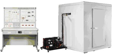 實訓(xùn)裝置主要由控制屏、實訓(xùn)桌、風(fēng)冷制冷機組及拼裝式冷庫等組成