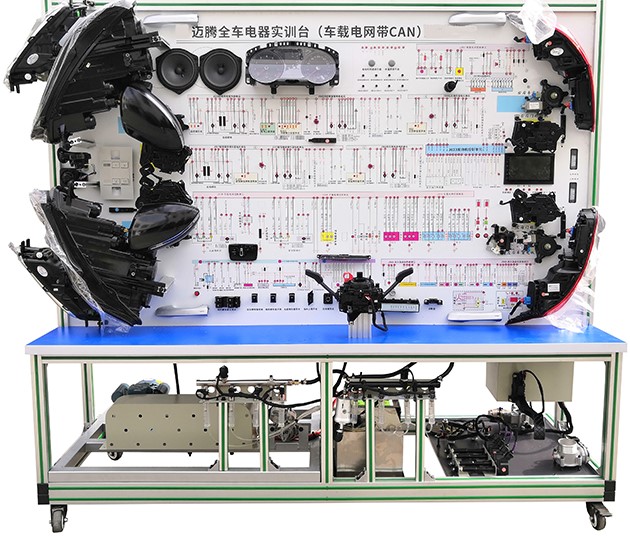 汽車電氣設(shè)備實訓(xùn)室。汽車電器設(shè)備實訓(xùn)室包含有汽車燈光系統(tǒng)、車載網(wǎng)絡(luò)系統(tǒng)、全車電器系統(tǒng)、汽車啟動系統(tǒng)、汽車空調(diào)系統(tǒng)、全車線路試驗臺、等實訓(xùn)教學(xué)設(shè)備。該實訓(xùn)室可以承擔(dān)《汽車構(gòu)造》、《汽車電器設(shè)備》、《汽車電控系統(tǒng)》、《汽車檢測與診斷》等課程的實踐教學(xué)任務(wù)?梢杂糜谘芯俊⒎治鋈囯娖飨到y(tǒng)、燈光系統(tǒng)、儀表系統(tǒng)等電器設(shè)備的電路及功能。利用這些系統(tǒng)進行實踐教學(xué),使學(xué)生熟悉汽車電器的結(jié)構(gòu)和工作原理,掌握各個系統(tǒng)的基本組成電路,掌握主要電路的檢測方法和系統(tǒng)的故障特征,從而具有一定的檢測和調(diào)校能力。