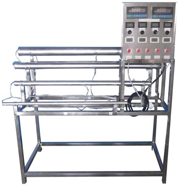 不同長(zhǎng)度和直徑的電鍍紫銅管四根,管內(nèi)設(shè)置加熱器,固體調(diào)壓模塊無(wú)機(jī)調(diào)節(jié)加熱,測(cè)溫傳感器,電功率測(cè)試數(shù)顯儀表,萬(wàn)能信號(hào)輸入巡檢儀顯示溫度,各管配有溫度控制儀表,不銹鋼臺(tái)架及控制屏等。