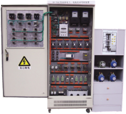 高級電工、電拖實訓考核裝置是按照勞動社會保障部頒發(fā)的“工人技術(shù)等級標準”和“職業(yè)技能鑒定規(guī)范”的內(nèi)容要求,根據(jù)初級電工培訓考核的實際情況而設(shè)計的新一代集培訓學習、理論驗證、實際操作能力、考核鑒定于一體的多功能柜式設(shè)備。整臺設(shè)備以標準的電氣控制柜為主柜,利用柜體的雙面空間,布置電器 及配套實驗器材,能完成初級電工考核鑒定中的電力拖動控制與照明電路的實操項目,該電工、電拖實訓考核裝置堅持理論聯(lián)系實際的原則,突出技能訓練,注重針對性、實用性、科學性,經(jīng)全國多家職業(yè)技能訓練中心、職校、技校使用證明,該柜體設(shè)計合理、實操方便,占地面積少。為延長電器的使用壽命,各電器的接點都與接線端子相連,再讓學生在接線端子上接線,連接電機、電器來完成各項控制實驗,有效降低材料消耗,延長使用壽命。該套設(shè)備適用于各勞動職業(yè)技能鑒定部門,同時適應(yīng)各大、中專、技校、職校初級電工、電拖專業(yè)教學與實訓考核。