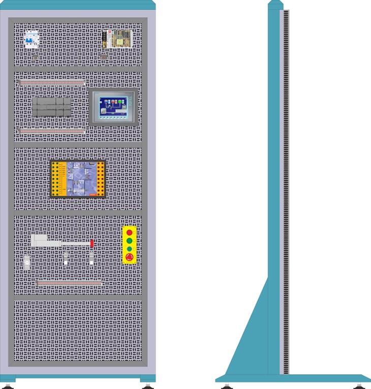 配套教學使用的對象,三層電梯、自動售貨機、機械手、自動門、天塔之光、全自動洗衣機、自動成型機、紅綠燈、裝配流水線、四路搶答器、音樂噴泉、軋鋼機、郵件分揀、運料小車、物料分揀、多級傳輸帶等模擬控制實訓,指示燈采用貼片雙色LED,面板采用3D立體彩色搭配設計,使模擬對象更直觀立體,開關(guān)采用自復位兼自鎖一體設計使實訓能靈活實用,為適用各類PLC模塊具有輸入信號高低電平切換功能。