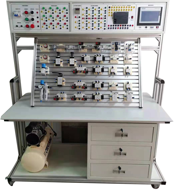 氣動實訓(xùn)元件均為常用工業(yè)氣動元件,便于了解掌握幾十種常用氣動元件的結(jié)構(gòu)、性能及用途。掌握幾十種基本實訓(xùn)回路的工作過程及原理。實訓(xùn)時組裝實訓(xùn)回路快捷、方便。氣動實訓(xùn)電氣主控單元配備1套PLC控制與1套繼電器控制,簡單實用。
