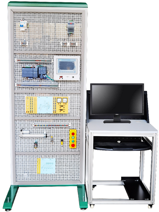 采用模塊組合式結(jié)構(gòu),含開(kāi)關(guān)量、模擬量、變頻調(diào)速、觸摸屏、通信模塊等,配套工控組態(tài)監(jiān)控軟件,實(shí)現(xiàn)仿真化、信息化實(shí)訓(xùn)教學(xué)。