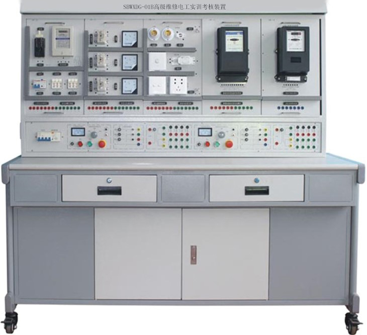 電氣安裝與維修實(shí)訓(xùn)考核裝置是根據(jù)工廠電氣安裝和室內(nèi)電氣安裝等維修 電工和電氣安裝工實(shí)訓(xùn)鑒定要求開發(fā)的一種通用實(shí)訓(xùn)平臺。 適合于各類職業(yè)院校 和技工學(xué)校維修電工、 電氣安裝工、水電工等有電氣實(shí)訓(xùn)要求的相關(guān)專業(yè)的作為 公共實(shí)訓(xùn)平臺使用。 采用鋼制網(wǎng)孔板和鋼制專用型材組接而成,安裝有自鎖式腳輪,方便移動(dòng)和使用。裝 置表面噴塑,色彩穩(wěn)重氣派。電氣安裝與維修實(shí)訓(xùn)裝置設(shè)計(jì)高度以人站在一級人字梯即可方便操作的高度,既安 全又能使使用者感受到施工現(xiàn)場環(huán)境。 橫向、 叢向?qū)挾群线m, 可以模擬現(xiàn)場線路的轉(zhuǎn)向布置。