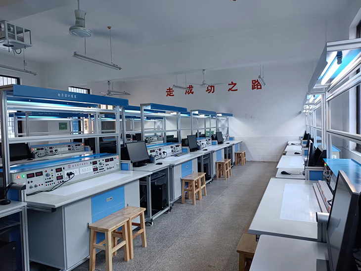 應用電子技術實驗室、應用電子實訓室設備隸屬于電氣工程與自動化院校,應用電子技術實驗室設備在學校的科學研究、學科建設、人才培養(yǎng)等方面發(fā)揮著重大作用。中心貫徹學!耙员緸楸尽苯ㄔO具有特色的一流本科教育理念,緊密圍繞社會經(jīng)濟發(fā)展需求,遵循教育規(guī)律,堅持“立足教育、面向全國、服務院校、服務行業(yè)”的辦學定位,適應人工智能、電氣自動化、電子科學等科技發(fā)展,融教學、科研和生產(chǎn)為一體,強調(diào)理論與實踐密切結合,突出應用電子特色,培養(yǎng)應用電子、人工智能新技術應用及開發(fā)能力,為電氣自動化、人工智能、應用電子相關行業(yè)培養(yǎng)德、智、體、美、勞全面發(fā)展,具有扎實基礎理論、寬厚專業(yè)知識、較強實踐能力和良好職業(yè)素養(yǎng)的應用型工程技術人才。中心突出校企深度合作長效機制,形成“專業(yè)特色與行業(yè)需求相融合、雙創(chuàng)教育與專業(yè)教育相融合、實踐教育與企業(yè)資源相融合、課內(nèi)培養(yǎng)與課外培養(yǎng)相融合、培養(yǎng)過程與企業(yè)協(xié)同相融合”的五融合人才培養(yǎng)特色,提高應用電子實踐教學質(zhì)量。