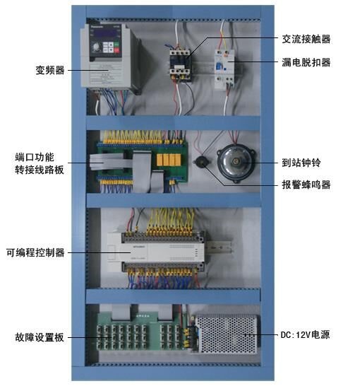 電梯的電氣控制系統(tǒng)采用PLC和交流變頻調(diào)速控制,其硬件結(jié)構(gòu)的組成及功能與實(shí)際電梯完全一樣。具有自動(dòng)平層、自動(dòng)關(guān)門、順向響應(yīng)轎內(nèi)外呼梯信號、直駛、電梯安全運(yùn)行保護(hù)以及電梯急停、慢上、慢下、照明、風(fēng)扇等功能,性能可靠、運(yùn)行平穩(wěn)、操作簡單、能耗低,特別適合于教學(xué)。此外,透明仿真教學(xué)電梯的軟硬件均采用開放式結(jié)構(gòu),因此,院校也可以利用此套裝置進(jìn)行二次開發(fā)研究。