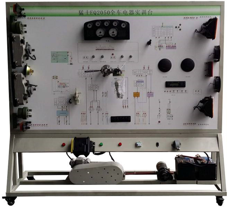 東風(fēng)2050全車電器實訓(xùn)設(shè)備采用 全新猛士EQ2050柴油機整車電器實物為基礎(chǔ),充分展示汽車儀表系統(tǒng)、燈光系統(tǒng)、雨刮系統(tǒng)、喇叭系統(tǒng)、發(fā)動機電器系統(tǒng)、起動系統(tǒng)和充電系統(tǒng)等汽車電器各系統(tǒng)的組成結(jié)構(gòu)和工作過程。
