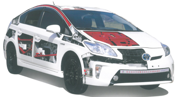 車身解剖部位:對半解剖,副座側(cè)2車門內(nèi)外解剖(運(yùn)行件外可觀察);前蓋對對半解剖(外可觀察電機(jī)與變速器運(yùn)行);后蓋對對半解剖(外可觀察行李箱內(nèi)部器件);前后保險(xiǎn)桿對半解剖;