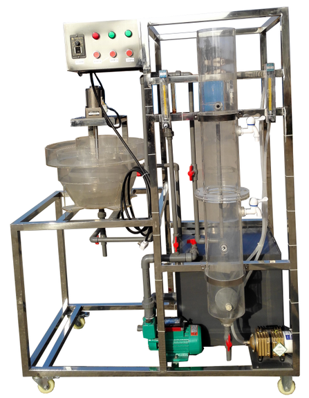 穿孔曝氣柱、微孔曝氣頭、平板葉輪曝氣池、攪拌電機、氣泵、水泵、流量計、水箱、高壓氧氣管、閥門管道、不銹鋼框架、控制屏。