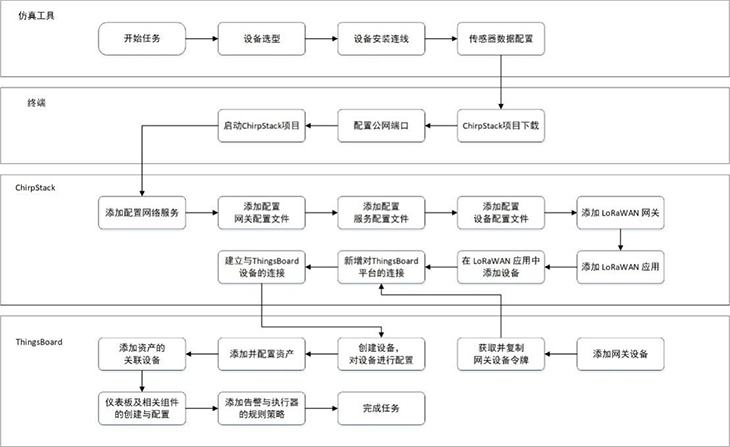 同時(shí),平臺(tái)引入ChirpStack、Node-RED、ThingsBoard、Home Assistant等豐富的開源物聯(lián)網(wǎng)軟件資源,融合工程仿真和行業(yè)設(shè)備,實(shí)現(xiàn)物聯(lián)網(wǎng)的感知層設(shè)備、網(wǎng)關(guān)及網(wǎng)絡(luò)傳輸層、平臺(tái)及應(yīng)用層的數(shù)據(jù)鏈路完整性,保證底層數(shù)據(jù)采集到前端應(yīng)用效果的展現(xiàn)。