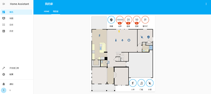 AIoT平臺(tái)向用戶推薦提供Home Assistant開源系統(tǒng)進(jìn)行智能家居案例實(shí)現(xiàn)。Home Assistant作為一個(gè)基于Python3的自動(dòng)化智能家居平臺(tái),支持眾多品牌的智能家居設(shè)備部署,方便手動(dòng)或按照自己的需求自動(dòng)化聯(lián)動(dòng)各種外部設(shè)備,可通過Node-RED管理設(shè)備的自動(dòng)化規(guī)則,直觀展現(xiàn)傳感器設(shè)備在不同環(huán)境下實(shí)現(xiàn)的功能。用戶還可自主繪制并導(dǎo)入智能家居場(chǎng)景平面圖,設(shè)置相關(guān)傳感器設(shè)備的位置,提高用戶體驗(yàn)感。