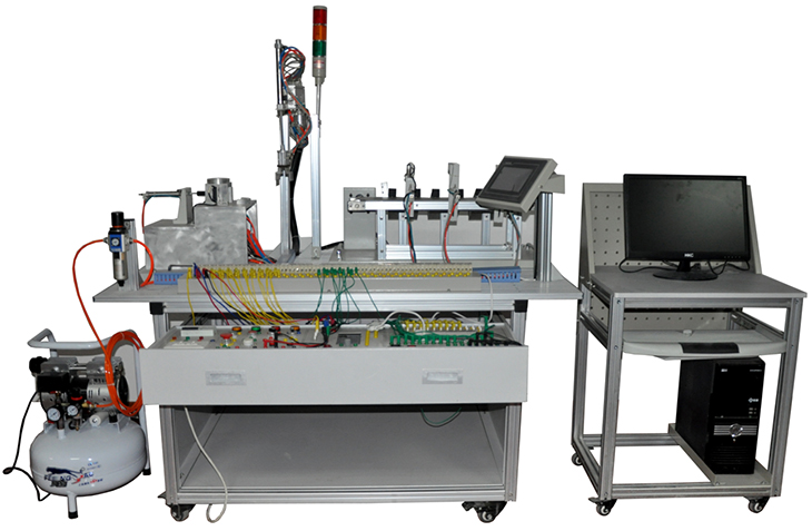 本設(shè)備主要包括實訓(xùn)臺架、典型的機電一體化設(shè)備的機械部件、PLC模塊、變頻器模塊、按鈕模塊、電源模塊、模擬生產(chǎn)設(shè)備實訓(xùn)模塊、接線端子排和各種傳感器等組成。整體結(jié)構(gòu)采用開放式和拆裝式,實訓(xùn)裝置用于機械部件組裝,可根據(jù)現(xiàn)有的機械部件組裝生產(chǎn)設(shè)備,也可添加機械部件組裝其他生產(chǎn)設(shè)備,使整個裝置能夠靈活的按教學(xué)或競賽要求組裝具有生產(chǎn)功能的機電一體化設(shè)備。