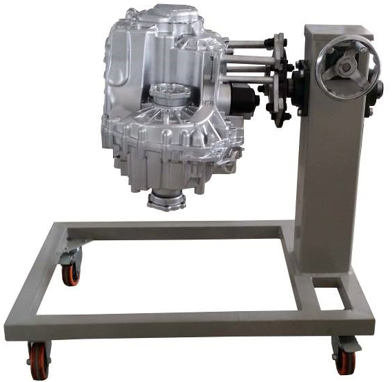 采用減速翻轉(zhuǎn)機構(gòu),可使變速器旋轉(zhuǎn)任意角度,并能任意位置鎖止,便于學(xué)生從不同的角度進行拆卸和裝配。