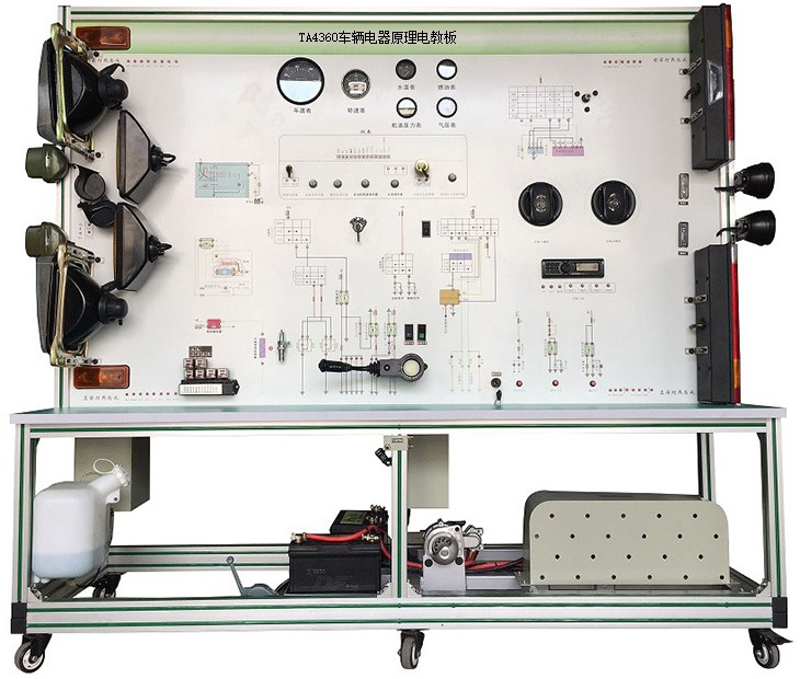 該設(shè)備采用泰安TA4360柴油機整車電器實物為基礎(chǔ),充分展示汽車儀表系統(tǒng)、燈光系統(tǒng)、雨刮系統(tǒng)、喇叭系統(tǒng)、發(fā)動機電器系統(tǒng)、起動系統(tǒng)和充電系統(tǒng)等汽車電器各系統(tǒng)的組成結(jié)構(gòu)和工作過程。
