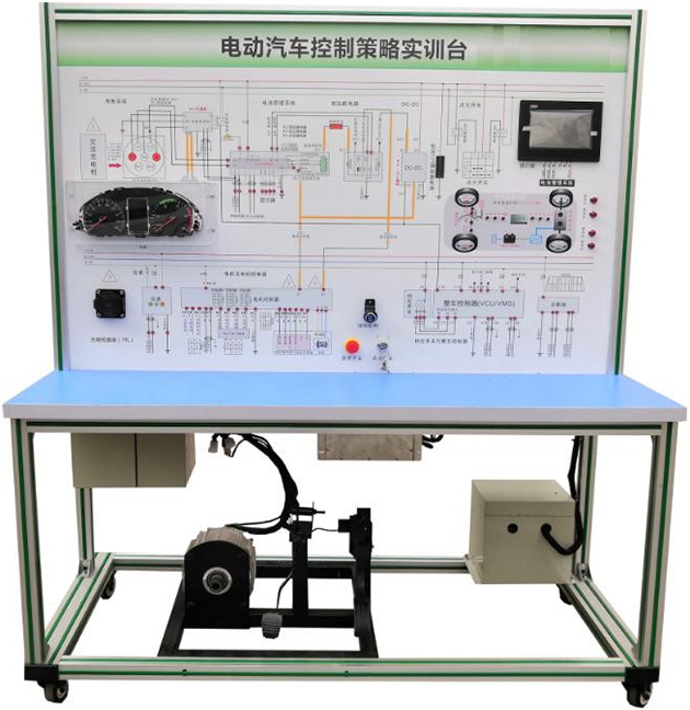 純電動汽車電控系統(tǒng)教學(xué)平臺采用純電動車控制策略系統(tǒng)(包含電機控制、電池管理、VCU控制、車載充電機、電源轉(zhuǎn)換系統(tǒng)、高壓安全系統(tǒng))的真實器件制作,包含電池及管理系統(tǒng)、電機及控制系統(tǒng)、車載充電系統(tǒng)、整車控制器VCU及控制系統(tǒng)、電源轉(zhuǎn)換系統(tǒng)(AC-DC模塊、DC-DC模塊、DC-AC模塊)、高壓安全系統(tǒng),真實展示電動汽車控制策略系統(tǒng)的結(jié)構(gòu)原理與工作過程,純電動車控制策略系統(tǒng)動力性能、可靠性能、安全性能。實現(xiàn)控制策略演示驗證操作,包括起步模式、正常驅(qū)動模式、能量管理策略、安全控制策略以及其他情況下的控制策略等,并對控制策略進行檢測分析診斷。